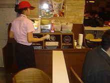 Lotteria is a chain of fast-food restaurants in East Asia that grew out of its first shop in Tokyo, Japan in September 1972. Taking its name from its parent company, Lotte Corporation, it currently has franchises in Japan, South Korea, Indonesia, Vietnam, Cambodia, Laos, and Myanmar.[1] The origin of the name is a combination of corporate names Lotte and Cafeteria.
