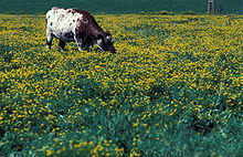 Lotus species are used as food plants by the larvae of some Lepidoptera species. Several species are culvivated for forage, including L. corniculatus, L. glaber, and L. pedunculatus. They can produce toxic cyanogenic glycosides which can be potentially toxic to livestock, but also produce tannins, which are a beneficial anti-bloating compound.