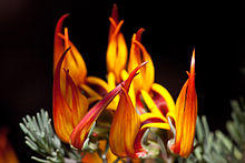 Most species have leaves with five leaflets; two of these are at the extreme base of the leaf, with the other three at the tip of a naked midrib. This gives the appearance of a pair of large stipules below a "petiole" bearing a trefoil of three leaflets – in fact, the true stipules are minute, soon falling or withering.[7] Some species have pinnate leaves with up to 15 leaflets. The flowers are in clusters of three to ten together at the apex of a stem with some basal leafy bracts; they are pea-flower shaped, usually vivid yellow, but occasionally orange or red. The seeds develop in three or four straight, strongly diverging pods, which together make a shape reminiscent of the diverging toes of a small bird, leading to the common name "bird's-foot".
