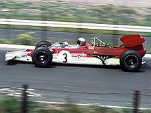 Like the Lotus 56 for the Indy 500 (and later F1), the 63 chassis was designed around a four wheel drive system. This was not totally revolutionary at the time, as four wheel drive had been used on the Ferguson P99 F1 car that won at Oulton Park as early as 1961, but with little development thereafter. However, it was not a successful design. In fact, the Matra MS84 was the only 4WD F1 which scored points (driven by Johnny Servoz-Gavin, at the 1969 Canadian Grand Prix) something neither Lotus nor McLaren managed, while Cosworth did not even race their 4WD design.[2] The 63 was an evolution of the 49, but featured wedge shaped rear bodywork and integrated wings, which would be used to great effect in the Lotus 72.