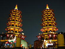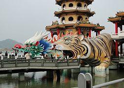 Lotus Pond (Chinese: 蓮池潭; pinyin: Liánchí Tán; Pe̍h-ōe-jī: Liân-tî-thâm) is an artificial lake and popular tourist destination on the east side of Zuoying District in Kaohsiung, Taiwan. Opened in 1951, it is famous for the lotus plants on the lake and the numerous temples around the lake, including the Spring and Autumn Pavilions (春秋閣), the Dragon and Tiger Pagodas (龍虎塔), and the Confucian Temple (孔廟).