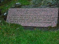 Maps of the area name a mound to the east of Loudoun Hill as 'Wallace's Grave'. Traditionally this is the burial site of the English dead, rather than Wallace's own grave. On the slope opposite the mound is a monument to Wallace. Called the 'Spirit of Scotland', it shows an outline of Wallace in steel, five metres high. It was designed and created by local artist Richard Price, and dedicated in September 2004.