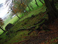 Loudoun Hill and the lands immediately around were farmed intensively for many generations, as shown by OS maps. Two farms were however abandoned between the 19th and 20th centuries, namely Underhill and Backhill. The ruins still stand and provide shelter for the sheep from surviving farms that continue to graze Loudoun Hill and the surrounding fields.