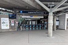 Lougheed Town Centre (sometimes abbreviated as Lougheed) is an elevated station on the Expo and Millennium Lines of Metro Vancouver's SkyTrain rapid transit system. The station is located at Lougheed Highway and Austin Road in Burnaby, British Columbia, Canada. Initially a Millennium Line station, a reorganization of SkyTrain service patterns in 2016 brought a branch of the Expo Line over the existing tracks to serve the station. It is one of three stations where transfer between the Expo Line and the Millennium Line is possible, the other two such points of transfer being Commercial–Broadway and Production Way–University stations.