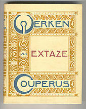 On 21 September 1891, Couperus and his wife settled in a small villa at the Roeltjesweg (now Couperusweg) in Hilversum;[8] after Couperus finished his new book Extaze in October 1891 he wrote Uitzichten ("Views") and started with his new romantic and spiritual novella Epiloog ("Epilogue").[3]:p.152 Extaze was published in 1892 in The Gids, and Couperus asked publisher L.J. Veen to publish it as a novel, but refused the offer Veen made him.[3]:p.153 In 1891 an English translation of Noodlot, Footsteps of Fate (translation made by Clara Bell) and in 1892 an English translation of Eline Vere were released. Meanwhile, L.J. Veen made Couperus a better offer, which he accepted, and Couperus received from Oscar Wilde his novel The Picture of Dorian Gray; Wilde had read the translation of Couperus' Footsteps of Fate.[9] and wrote to Couperus to compliment him with his book.[3]:p.155 Elisabeth Couperus-Baud translated Wilde's novel into Dutch: Het portret van Dorian Gray. Dutch critics wrote divergent reviews about Extaze: writer and journalist Henri Borel said that, the book was something like a young boy messing with an egg, while Lodewijk van Deyssel found it great. Frederik van Eeden wrote that he had a specific aversion against the book.[3]:p.157 Couperus and his wife moved to The Hague, where Couperus wrote Majesteit ("Majesty"), after he had read an article in The Illustrated London News about Nicholas II of Russia.[3]:p.159 Gerrit Jäger, a play writer, wrote a theatre performance of Noodlot; it was performed in 1892 by the Rotterdam theatre company, and the then-famous Dutch actor Willem Royaards, who was an acquaintance of Couperus, played one of the leading characters.[3]:p.160 On 1 February 1893 Couperus and his wife left for Florence, but they had to return because of the death of Couperus' mother. He wrote about how she rested on her deathbed in his novel Metamorfoze ("Metamorphosis").[3]:p.161 During this time Elisabeth Couperus-Baud was translating George Moore's novel Vain Fortune, while Majesteit was published in The Gids.[3]:p.164