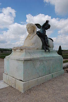 He was among the first generation of sculptors providing sculpture for the château of Versailles, notably for the rustic comedies in stone of the "Petite Commande" of 1664,[6] much of which was eliminated in later, grander garden projects and is known only through the meticulously kept records of the Bâtiments du Roi and the engravings of Jean Le Pautre. Among his works still at Versailles are a pair of marble sphinxes on the Parterre des Fleurs (1667–8), carved in collaboration with Jacques Houzeau following a model provided by Jacques Sarazin, and six of the fountain basins supported with trios of playing putti, musician, child term figures for the Parterre d’Eau.[7] Antoine Coysevox, who married his niece, was his most prominent pupil.