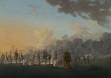 On 16 March, Latouche-Tréville participated in the Battle of Cape Henry, which took place at the mouth of Chesapeake Bay.[16] This action has led to a commonly repeated, but erroneous, report that Latouche-Tréville engaged in a "battle against the Chesapeake (March 1781)".[Note 4]
