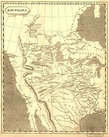 The United States claimed Louisiana included the entire western portion of the Mississippi River drainage basin to the crest of the Rocky Mountains and land extending southeast to the Rio Grande and West Florida.[33] Spain insisted that Louisiana comprised no more than the western bank of the Mississippi River and the cities of New Orleans and St. Louis.[34] The dispute was ultimately resolved by the Adams-Onis Treaty of 1819, with the United States gaining most of what it had claimed in the west.