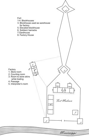 After the early explorations, the U.S. government sought to establish control of the region, since trade along the Mississippi and Missouri rivers was still dominated by British and French traders from Canada and allied Indians, especially the Sauk and Fox. The United States adapted the former Spanish facility at Fort Bellefontaine as a fur trading post near St. Louis in 1804 for business with the Sauk and Fox.[38] In 1808 two military forts with trading factories were built, Fort Osage along the Missouri River in western present-day Missouri and Fort Madison along the Upper Mississippi River in eastern present-day Iowa.[39] With tensions increasing with Great Britain, in 1809 Fort Bellefontaine was converted to a US military fort, and used for that purpose until 1826.
