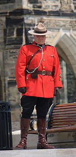 A Royal Canadian Mounted Police officer photographed from a low angle looks more imposing.