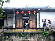By the time Lu Xun was born, the Zhou family had been prosperous for centuries, and had become wealthy through landowning, pawnbroking, and by having several family members promoted to government positions. His paternal grandfather, Zhou Fuqing, was appointed to the Imperial Hanlin Academy in Beijing: the highest position possible for aspiring civil servants at that time. Lu's early education was based on the Confucian classics, in which he studied poetry, history, and philosophy—subjects which, he later reflected, were neither useful nor interesting to him. Instead, he enjoyed folk stories and traditions: local operas, the mythological creatures and stories in the Classic of Mountains and Seas, and the ghost stories told to him by an illiterate servant who raised him, Ah Chang (whom he called "Mother Chang").[3] Zhou's mother was a member of the same landed gentry class as Lu Xun's father, from a slightly smaller town in the countryside (Anqiaotou, Zhejiang; a part of Tongxiang City). Because formal education was not considered socially appropriate for girls, she did not receive any, but she still taught herself how to read and write. The surname "Lu (魯)" in Zhou Shouren's pen name, "Lu Xun", was the same as his mother's surname, "Lu".[4]