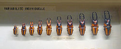 The Lucanidae have (male-only) antlers. Their size that often varies among individuals. Such variation is termed a scaling relationship or static allometry. Environmental conditions of development affect antler size, but genetic factors are active.