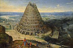 Lucas van Valckenborch regularly returned to the subject of the Tower of Babel, which was also depicted by Pieter Bruegel the Elder and later by a whole range of Flemish artists. The subject of the Tower of Babel is usually interpreted as a critique of human hubris, and in particular o the Roman Catholic Church which at the time was undertaking at great expense large-scale construction projects such as the St. Peter's Basilica. However, it has also been viewed as a celebration of technical progress, which would herald a better and more organized world.[8]