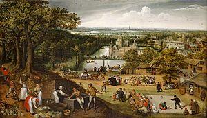 On 26 August 1560 he is recorded as entering the painters' guild of Mechelen.[4] Mechelen was known at the time as a center for oil and water-colours and especially landscape painting.[6] The artistic milieu of Mechelen was decisive on the development of the artist. Lucas van Valckenborch learned in Mechelen the art of watercolour painting. Here he also got to know the prominent painters Pieter Bruegel the Elder (1528-1569) and Hans Bol (1534-1593), who both played an important role in the development of landscape painting in the Low Countries.[4] The 17th-century biographer Karel van Mander reported that Lucas van Valckenborch learned to paint landscapes in Mechelen.[6]