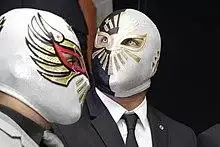 Masks (máscaras) have been used dating back to the beginnings of lucha libre in the early part of the 20th century, and have a historical significance to Mexico in general, dating to the days of the Aztecs.[16] Early masks were very simple with basic colors to distinguish the wrestler. In modern lucha libre, masks are colorfully designed to evoke the images of animals, gods, ancient heroes and other archetypes, whose identity the luchador takes on during a performance. Virtually all wrestlers in Mexico will start their careers wearing masks, but over the span of their careers, a large number of them will be unmasked. Sometimes, a wrestler slated for retirement will be unmasked in his final bout or at the beginning of a final tour, signifying loss of identity as that character. Sometimes, losing the mask signifies the end of a gimmick with the wrestler moving on to a new gimmick and mask. The mask is considered sacred to a degree, so much so that fully removing an opponent's mask during a match is grounds for disqualification.[17]