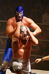 Luchadores are traditionally divided into two categories, rudos (lit. "tough guys", who are "bad guys", or "heels"), who bend or break the rules, and técnicos (the "good guys", or "faces", literally "technicians"), who play by the rules and their moves are much more complex and spectacular. Técnicos tend to have very formal combat styles, close to Greco-Roman wrestling and martial arts techniques, whereas rudos tend to be brawlers. Técnicos playing the "good guy" role, and rudos playing the "bad guy" role is very characteristic of Mexican lucha libre, which differs from U.S. professional wrestling, where many technical wrestlers play the role of heels (e.g., Kurt Angle), and many brawlers play as "faces" (e.g., Stone Cold Steve Austin & The Rock).[24] Although rudos often resort to using underhanded tactics, they are still expected to live up to a luchador code of honor. For instance, a luchador who has lost a wager match would prefer to endure the humiliation of being unmasked or having his head shaved rather than live with the shame that would come from not honoring his bet. Rudos have also been known to make the transition into técnicos after a career defining moment, as was the case with Blue Demon, who decided to become a técnico after his wrestling partner, Black Shadow, was unmasked by the legendary Santo. Tag teams are sometimes composed of both rudos and técnicos in what are called parejas increibles (incredible pairings). Parejas increibles highlight the conflict between a luchador's desire to win and his contempt for his partner.[25]