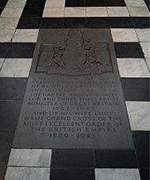 In honour of her work for maternity care, philanthropist and cricket enthusiast Julien Cahn donated funds to build the Lucy Baldwin Maternity Hospital in Stourport-on-Severn, Worcestershire.[8] It was commemorated by the prime minister on 16 April 1929, with a bronze dedication plaque over the main entrance reading "What she wanted most in the world. Presented to her by Julien Cahn Esq".[9]