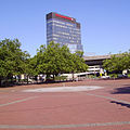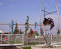 Berliner Platz. In the foreground: "Conversation II" (1999), kinetic sculpture by the American sculptor, George Rickey.