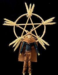 Wiccans use the names "Lughnasadh" or "Lammas" for the first of their autumn harvest festivals. It is one of the eight yearly "Sabbats" of their Wheel of the Year, following Midsummer and preceding Mabon. It is seen as one of the two most auspicious times for handfasting, the other being at Beltane.[62] Some Wiccans mark the holiday by baking a figure of the "corn god" in bread, and then symbolically sacrificing and eating it.[52]