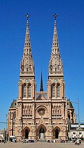 Luján is best known for its large neo-gothic Basilica, built in honor of the Virgin of Luján, the patron saint of Argentina. Every year, more than six million people make pilgrimages to the Basilica,[1] many walking there from Buenos Aires. The city is known as La Capital de la Fe (Capital of the Faith). It is popular day-trip for non-believers too, with abundant grill restaurants (like most places in Argentina) and souvenir shops with kitsch religious memorabilia.
