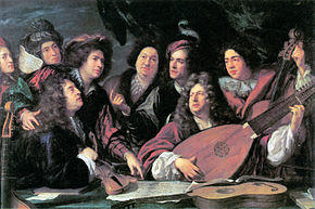 Portrait of Several Musicians and Artists by François Puget. Traditionally the two main figures have been identified as Lully and the librettist Philippe Quinault. (Louvre)