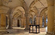 Apart from the obscurity which thus surrounds the very beginning of the history of the cathedral, the construction of Lund Cathedral is probably among the most well documented among any Romanesque churches.[18] Two contemporary accounts of the building of the cathedral, in the form of the illuminated manuscripts Necrologium Lundense and Liber daticus vetustior, are still preserved in the library of Lund University. Both books contain notes, written in Latin, with dates of the progression of the construction. The oldest part of the cathedral is the large crypt. Its main altar was inaugurated on 30 June 1123, followed by the north (1126) and south (1131) side altars of the crypt. Only then did the cathedral begin to be used.[18] One of the main functions of the crypt appears to have been as a place where baptisms were conducted.[19] The main altar of the cathedral was dedicated to Saint Mary and Saint Lawrence on 1 September 1145, by the second archbishop of Lund, Eskil, in a ceremony attended by bishops from present-day Germany, Denmark and Sweden.[20] By then, the construction of the cathedral to more or less its present dimensions was complete.[21][22]