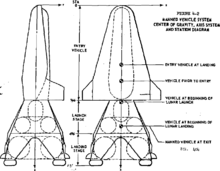 The Lunex Project was a US Air Force 1958 plan for a crewed lunar landing prior to the Apollo Program. The final lunar expedition plan in 1961 was for a 21-person underground Air Force base on the Moon by 1968 at a total cost of $7.5 billion.[1] The primary distinction between the later Apollo missions and Lunex was the orbital rendezvous maneuver. The Lunex vehicle, composed of a landing module and a lifting body return/re-entry module, would land the entire vehicle and all astronauts on the surface, whereas the final Apollo mission involved a separate ascent module leaving the command module and service module connected in lunar orbit with a single astronaut. The original plan for Apollo was for direct ascent, similar to Lunex.