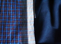 They are especially worn in hot regions. There are also cheaper "open" lungis, in identical dimensions but not sewn into a tube shape. The standard adult lungi is 115 cm in height and 200 cm in length, when open. Children's lungis are available in approximately 2/3 of this size. They are normally woven from cotton and come in a variety of designs and colors. Silk lungis are available for ceremonial purposes such as weddings. The most common styles are either solid-colored or plaid, reflecting the relative ease and cost-effectiveness of producing these patterns on a power loom. Blue is particularly popular, since it fades to pleasant tones in contrast to other colors. Regardless of the design or color, lungis are often lined at the top and bottom with a black/white stripe containing reinforced weaving to prevent fraying.