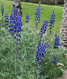 Lupinus, commonly known as lupin or lupine,[note 1] is a genus of flowering plants in the legume family Fabaceae. The genus includes over 199 species, with centers of diversity in North and South America.[1] Smaller centers occur in North Africa and the Mediterranean.[1][2] They are widely cultivated, both as a food source and as ornamental plants, although in New Zealand's South Island, introduced lupins are viewed as a severe environmental threat.[3]