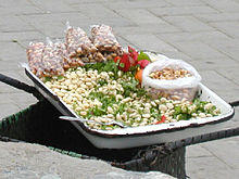 In traditional farming practices harvest occurs when plants have reached full maturity and the water content of seeds is between 8-12%.[5] From peasant plots average yield is about 500 to 1,000 kg (1,100–2,200 lb) per hectare under suitable conditions yield reaches up to 3,500 kg (7,700 lb) per hectare.[4]