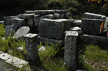 Although the sanctuary of Despoina has been excavated to a large extent, the urban area of Lycosura and its periphery have received much less attention. Outside of the sanctuary and sixty meters southwest of the temple, on the opposite side of the ridge running southeast to northwest, up to the hill of the acropolis, a number of structures of Hellenistic and Roman date have been uncovered that may have hydraulic functions, perhaps a nymphaeum (fountain-house) and a complex of Roman thermae (baths).[9] Some remains of the city wall have also been traced.