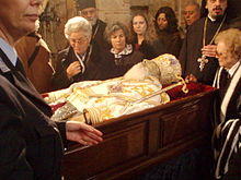 Lying in repose is the tradition in which the body of a deceased person, often of high social stature, is made available for public viewing. Lying in repose differs from the more formal honor of lying in state, which is generally held at the principal government building of the deceased person's country and often accompanied by a guard of honour.[1]