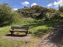 The viewpoint is marked by a beacon which was constructed to mark the Silver Jubilee of Queen Elizabeth in 1977 and is lit on special occasions. On the other side of the road, steps and a rough path lead up to Craigs Top, the highest point of the hill. There are steep craigs on the north and west of the hill, formed by glacial erosion, to its south undulating upland forms the site of Greenock golf course. Its high point is at Bow Hill on the west side, and the ground slopes less steeply to the south and east.