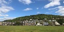 The hill was at one time known as the Craigs or Craigs Top, the Bingens, Mount Binian or Binnan's Hill. Spellings included the Binghans, Bingans, Bingins, Bingens, and Binyans, and it was suggested that this came from the Gaelic Binneans with the meaning of little hills.[3][4][5] The Reform Act 1832 plan of Greenock shows Craigs Top, with Craigs Farm House to its east,[6] as does an 1842 map of "Greenock and its environs" though it uses the term Farm Steading.[7] From 1856 onwards, large scale Ordnance Survey maps show Craigs Top, with Craigs farm about 330 yards (300 m) to the east. They also show Bow Hill to the south, but do not give any other name to the northern part of the hill.[8][9] Admiralty charts from 1850 on show Binian Peak[10] or Mt. Binian,[11] after 1915 they show Craigs Top with Mt. Binian as a supplementary name,[12] after 1932 just Craigs Top.[13]