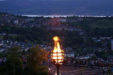 To mark the Silver Jubilee of Elizabeth II in 1977, the Lyle Hill beacon was built at the viewpoint beside Lyle Road. This beacon has subsequently been lit for major occasions, including the Queen's Diamond Jubilee in 2012,[31] and her 90th birthday in 2016.[32]