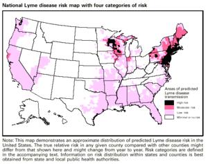 - ^ "Lyme Disease Data" Archived 30 April 2012 at the Wayback Machine. Centers for Disease Control and Prevention (CDC).
