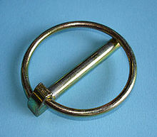A linchpin, also spelled linch pin, lynchpin, or lynch pin, is a fastener used to prevent a wheel or other part from sliding off the axle upon which it is riding. The word is first attested in the late fourteenth century and derives from Middle English elements meaning "axletree pin".[1][2]