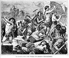 ![]() Lysander outside the walls of Athens, ordering their destruction. 19th century lithograph | |