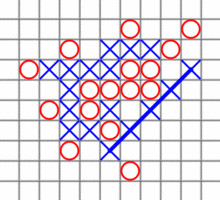 An m,n,k-game is an abstract board game in which two players take turns in placing a stone of their color on an m×n board, the winner being the player who first gets k stones of their own color in a row, horizontally, vertically, or diagonally.[1][2] Thus, tic-tac-toe is the 3,3,3-game and free-style gomoku is the 15,15,5-game. An m,n,k-game is also called a k-in-a-row game on an m×n board.