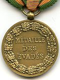 The Escapees' Medal (French: Médaille des Évadés) is a military award bestowed by the government of France to individuals who were prisoners of war and who successfully escaped internment or died as a result of their escape attempt. The "Escapees' Medal" was established by a 1926 law, intended to honour combatants not only of the First World War, but also of the Franco-Prussian War of 1870. Its statute was later amended to include combatants of the Second World War and later conflicts.[1]