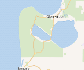 M-109 starts at an intersection on M-22 north of Empire. The trunkline runs northward along Dune Highway past Maple Grove Cemetery and through woods in the Sleeping Bear Dunes National Lakeshore.[3][4] The area was named the "Most Beautiful Place in America" by Good Morning America in August 2011;[5] the designation came after a social media campaign to capitalize on the show's website poll.[6] Further north, the highway passes the entrance to Pierce Stocking Scenic Drive before running along the western shore of Glen Lake. Near the northwestern corner of the lake, M-109 passes the entrance to the Dune Climb in an area that's predominantly fields. The trunkline makes a 90-degree turn at the intersection with Glen Haven Road, the former M-209, south of Glen Haven, a former logging town on the shores of Lake Michigan. M-109 turns easterly at the intersection to follow Harbor Highway. It runs through another wooded area between Glen Lake and Sleeping Bear Bay. The highway passes the D.H. Day Campground and enters Glen Arbor, following Western Avenue. At the intersection with M-22 (Ray Street), M-109 terminates in the middle of town.[3][4]