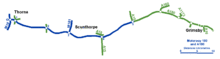 | Scunthorpe M181 | J3 | Scunthorpe (W & C) M181 | 53°33′24″N 0°42′45″W / 53.55678°N 0.71257°W |
