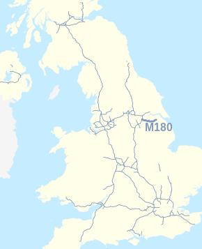 The M180 is a 25.5 miles (41.0 km) motorway in England from junction 5 on the M18 motorway in the Metropolitan Borough of Doncaster to Barnetby close to Humberside Airport some 10 miles (16 km) from the port of Immingham and 14 miles (23 km) from the port of Grimsby and the east coast and provides access for major routes to Cleethorpes, Grimsby, Hull (via the Humber Bridge), Immingham, Lincoln, Scunthorpe, Humberside Airport and the Killingholme Oil Refineries; Humber Oil Refinery and Lindsey Oil Refinery. The road forms part of the unsigned Euroroute E22 and is the main route along the south bank of the Humber Estuary. At 25 miles long it is the longest motorway in the United Kingdom to carry a three digit number and one of just two major motorways (the other being the M621) in the UK to carry a three digit number.
