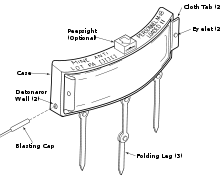 The M18A1 Claymore mine with the M57 firing device and M4 electric blasting cap assembly. | |