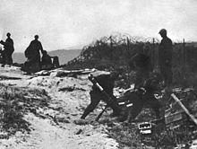 The M2 4.2-inch mortar was a U.S. rifled 4.2-inch (107 mm) mortar used during the Second World War and the Korean War. It entered service in 1943. It was nicknamed the "Goon Gun" (from its large bullet-shaped shells, monopod, and rifled bore – like a rifle for shooting Goons) or the "Four-Deuce" (from its bore size in inches). In 1951 it began to be phased out in favor of the M30 mortar of the same caliber.