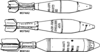- High explosive (HE): Designations M821, M821A1, M889, M889A1, M372-series, and M362. Used against personnel and light materiel targets.