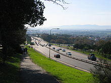 Around Hospital Bend the M3 is concurrent with the N2 for approximately a kilometre; when the N2 branches off to the east as Settlers Way, the M3 runs south as Rhodes Drive past the University of Cape Town. This section of the highway forms the western boundary of the suburbs of Mowbray, Rosebank, Rondebosch, and part of Newlands. It separates these suburbs from the Table Mountain National Park, except where the Upper Campus of the University is located west of the freeway.