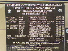 - ^ "Tribute to Coach Bomb Victims". The Oldham Chronicle. 3 February 2010. Retrieved 6 February 2021.