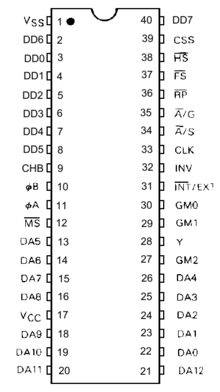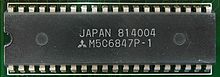 The MC6847 is a video display generator (VDG) first introduced by Motorola and used in the TRS-80 Color Computer, Dragon 32/64, Laser 200, TRS-80 MC-10, NEC PC-6000 series, Acorn Atom, and the APF Imagination Machine, among others. It is a relatively simple display generator compared to other display chips of the time. It is capable of displaying text and graphics contained within a roughly square display matrix 256 pixels wide by 192 lines high. It is capable of displaying nine colors: black, green, yellow, blue, red, buff (almost-but-not-quite white), cyan, magenta, and orange. The low display resolution is a necessity of using television sets as display monitors. Making the display wider risked cutting off characters due to overscan. Compressing more dots into the display window would easily exceed the resolution of the television and be useless.[2][3]