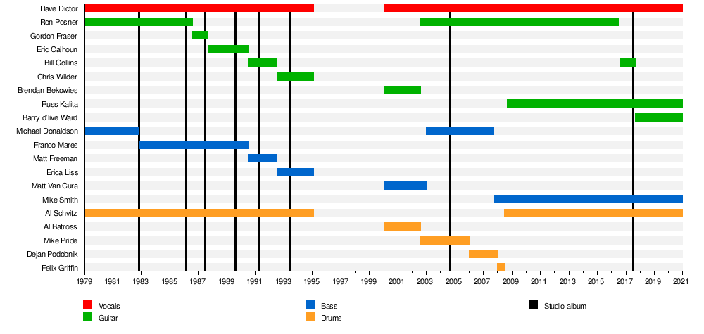 - Vocals – Dave Dictor (1979-1995, 2000–present)